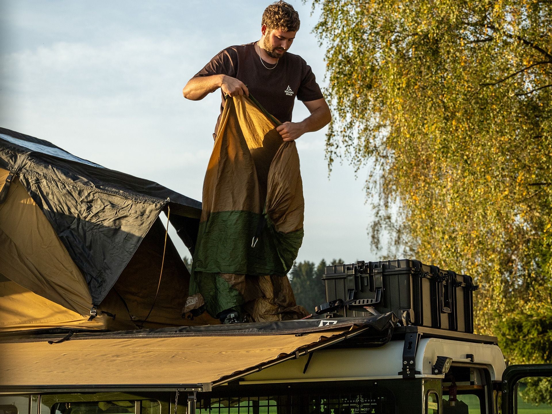 SpaceCase, dein treuer Begleiter für mehr Freiraum auf deinen Abenteuern. Die große Grundfläche hat die perfekten Abmessungen für alles, was du nicht gerne im Fahrzeug mitführst wie Grill, Kohle, Feuerholz, Werkzeug, Stühle oder Schmutzwäsche.