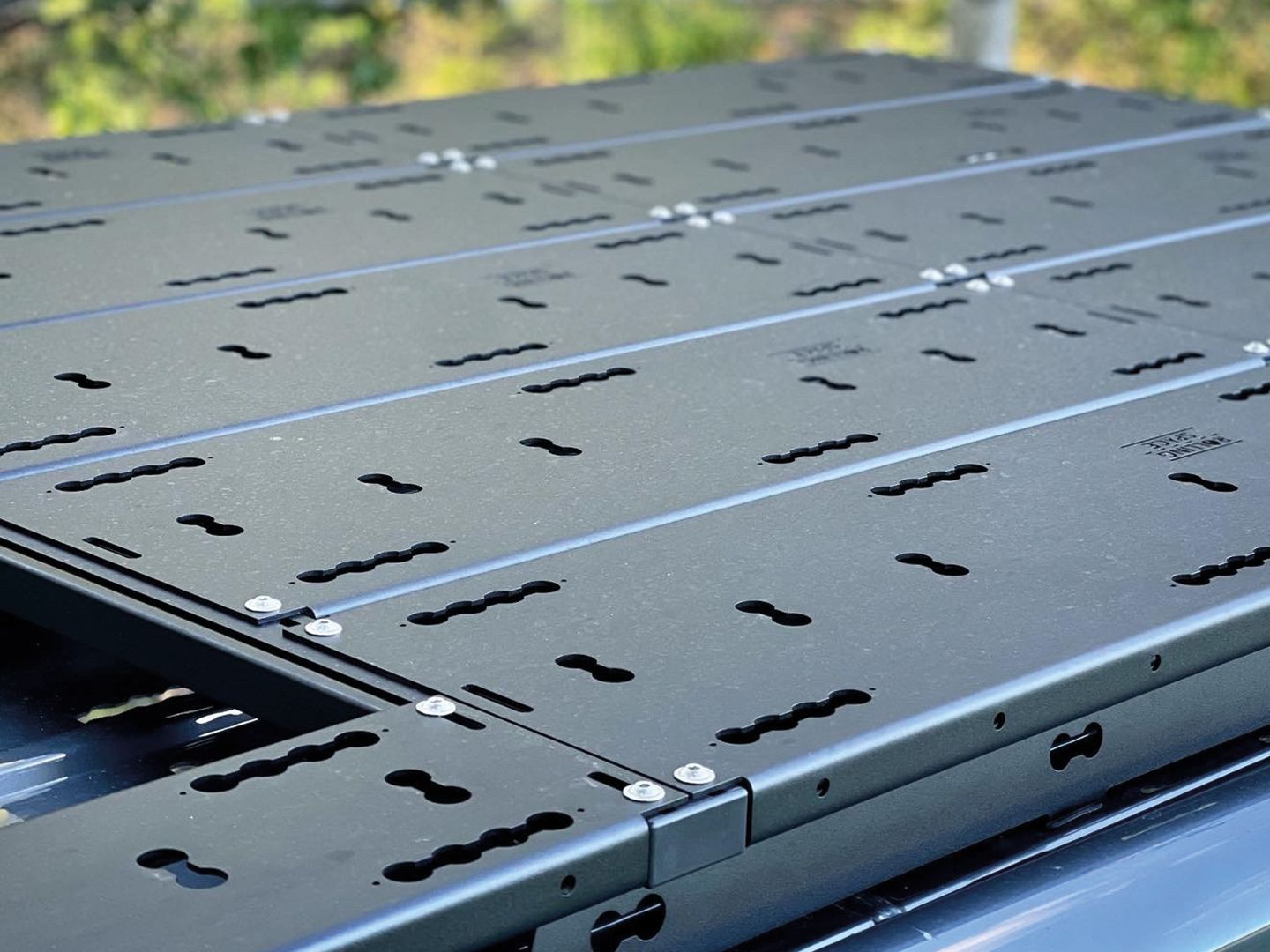 Passe deinen Dachträger je nach Situation an. Egal ob Solarfläche, Hängemattenhalter, Holz für ein Lagerfeuer, Platz für ein SUP, freie Fläche zum entspannten Liegen oder Sitzen, ein Schutzkoffer für zusätzlichen Stauraum, oder was du so transportieren willst. Alles lässt sich über die vielen Airlineprofilpunkte, welche in den Modulen ausgespart sind, sicher befestigen.